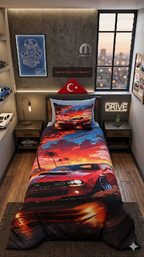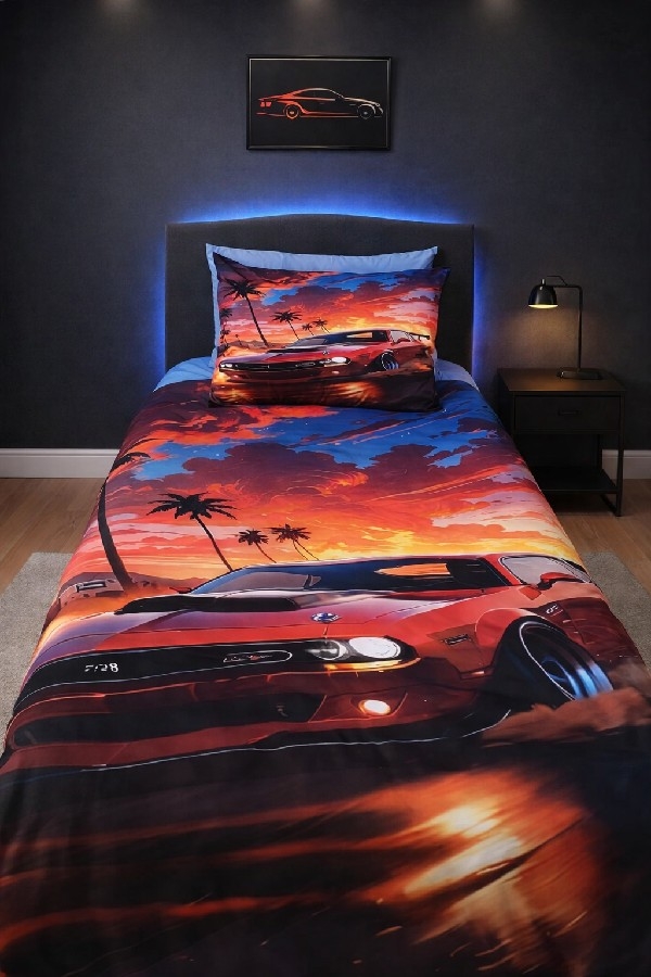Kumaş Kalitesi: %100 Pamuklu, yumuşak dokulu ve nefes alabilen kumaş.; Baskı Teknolojisi: Canlı renk garantili, solma yapmayan 5D yüksek çözünürlüklü dijital baskı.; Tasarım: Çocukların hayal dünyasını süsleyen özel kırmızı araba motifli tasarım.; Doku: Cilde dost, terletmeyen ve antialerjik yapı.; Dayanıklılık: Sık yıkamaya uygun, uzun ömürlü kullanım.