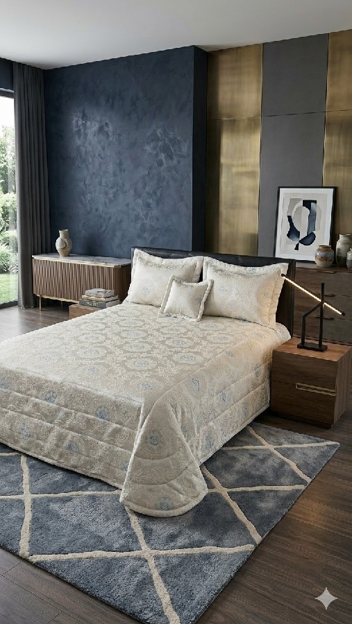Şıklığı ve konforu bir arada sunan özel dokulu jakar şönil kapitoneli yatak örtüsü ile yatak odanıza zarif bir dokunuş katın. Günlük kullanım için de, çeyizlik olarak da tercih edebileceğiniz kaliteli ve gösterişli bir modeldir.