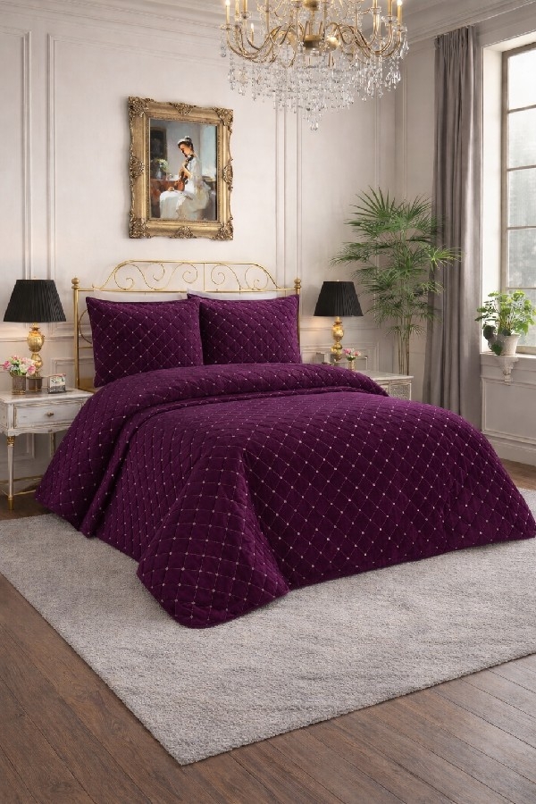 NALIA KADİFE KAPİTONELİ ÇİFT KİŞİLİK YATAK ÖRTÜSÜ 3 PARÇALI KADİFE YATAK ÖRTÜSÜ : 250*250 cm 1 ad. KADİFE YASTIK :50*70 cm 2 ad. TOPLAM: 3 PARÇALI ÖZEL ÇANTASI İLE BİRLİKTE 30 derecede yıkanabilir Uzun yıllar gönül rahatlığıyla kullanabilirsiniz