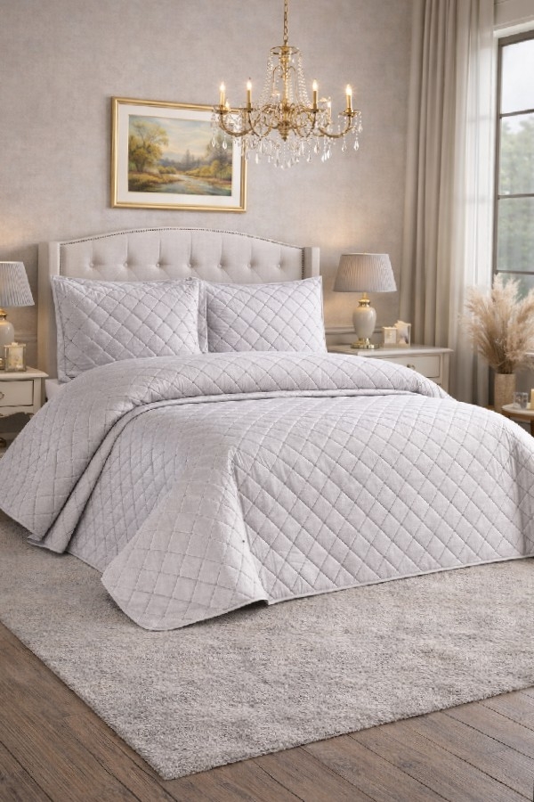 NALIA Kadife Kapitoneli Çift Kişilik Yatak Örtüsü