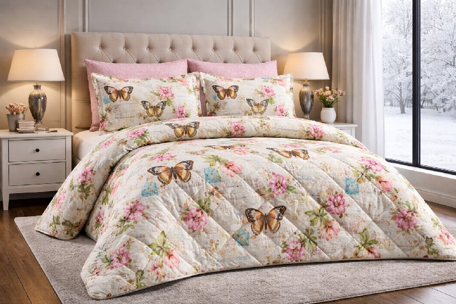 Yatak odanızda fark yaratacak bu set, hem göze hitap eder hem de sizi sıcacık sarar.